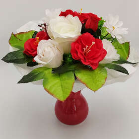 Piros-fehér örök csokor - NEM ÉLŐ VIRÁG